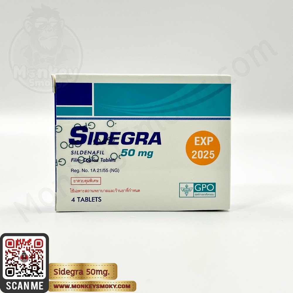 Sidegra 50mg. เป็นสายพันธ์ุไทย ผลิตโดยองค์การเภสัชกรรมของไทย และมีอ.ย.รับรอง (Reg.No.1A 21/55(NG)) ใช้ตัวยา Sildenafil Citrate เป็นส่วนผสม โดยองค์การเภสัชกรรม ได้ผลิตออกมา 2 ขนาด คือ ขนาด 50 MG และ100 MG โดย Sidegra เป็นยาขยายหลอดเลือด ช่วยแก้ไขปัญหาให้กับผู้ที่อวัยวะเพศไม่แข็งตัว แข็งตัวไม่เต็มที่ อ่อนตัวกลางคัน ใช้รักษาผู้ที่มีปัญหาหย่อนสมรรถภาพทางเพศ (ED)